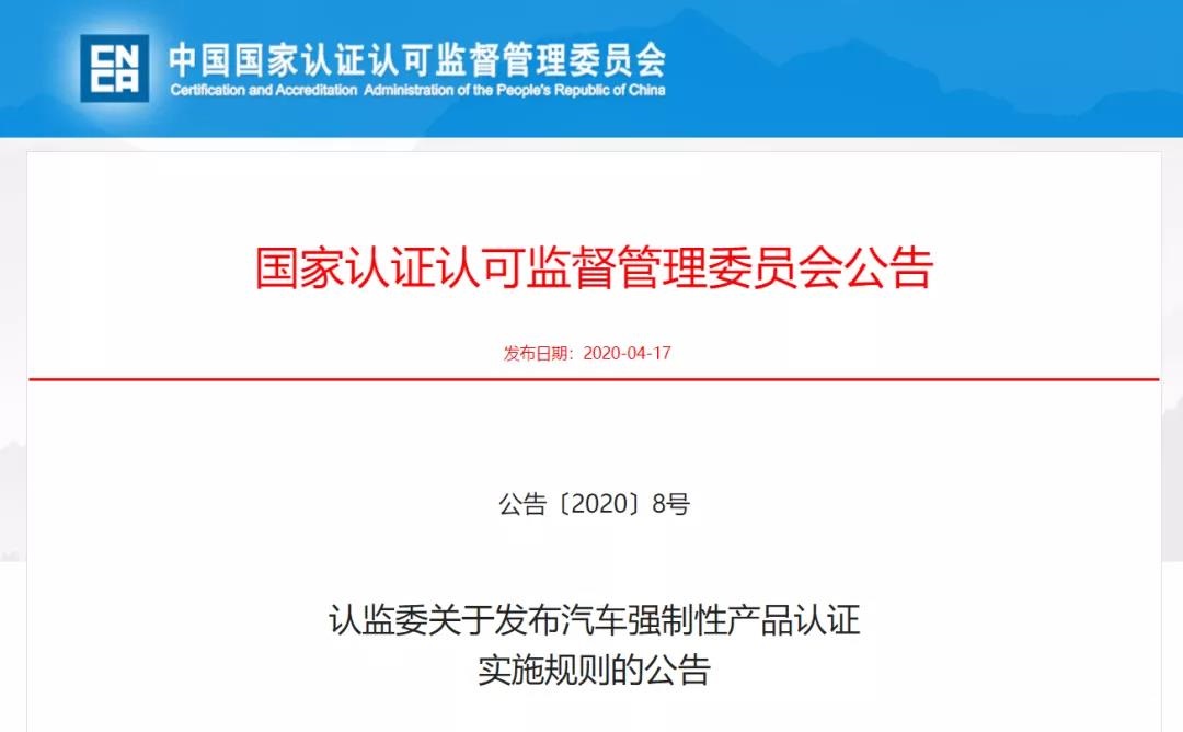 修訂發(fā)布《強制性產(chǎn)品認(rèn)證實施規(guī)則 汽車》(編號:CNCA-C11-01:2020,以下簡稱新版實施規(guī)則),進(jìn)一步完善認(rèn)證制度設(shè)計,簡化申報要求,優(yōu)化實施程序,豐富評價方式,提高汽車CCC認(rèn)證實施便利化程度。